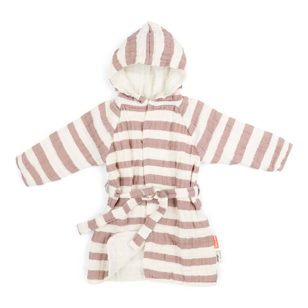 The cool bathrobe with wide stripes is a true must-have! Perfect for snuggles on slow Sunday mornings or to get your child dry and warm after bathtime. The soft bathrobe is made of multi-layered organic cotton that is lightweight and smooth on the skin.