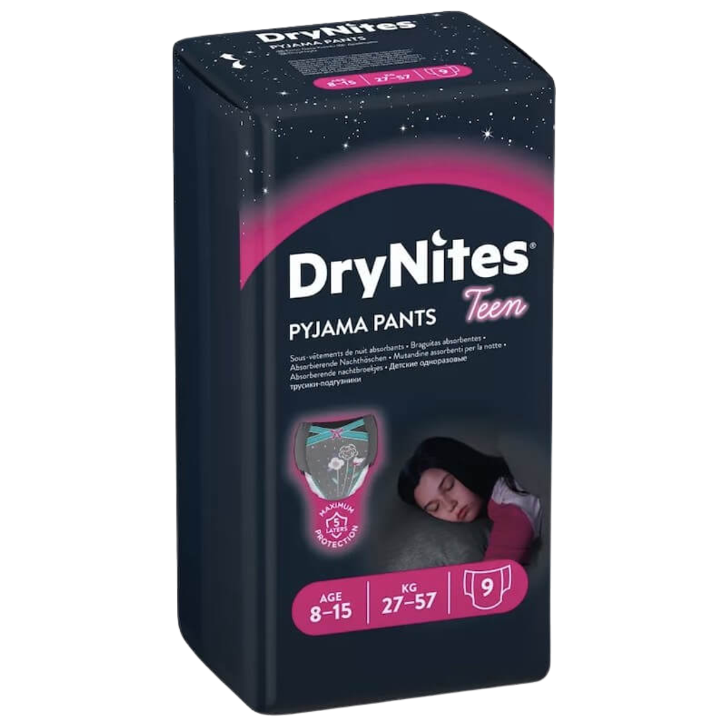 Huggies DryNites Pyjama Pants have been specifically designed for night time bed wetting and comes in a wide range of age groups. They offer trusted overnight absorbency and security for girls at all stages of their journey to dryness. DryNites Pyjama Pants also feature extra protection where girls need it most with a discreet fit that sits nice and trim underneath pyjamas. This helps children to maintain their self-esteem and confidence during their journey to being dry during the night time.