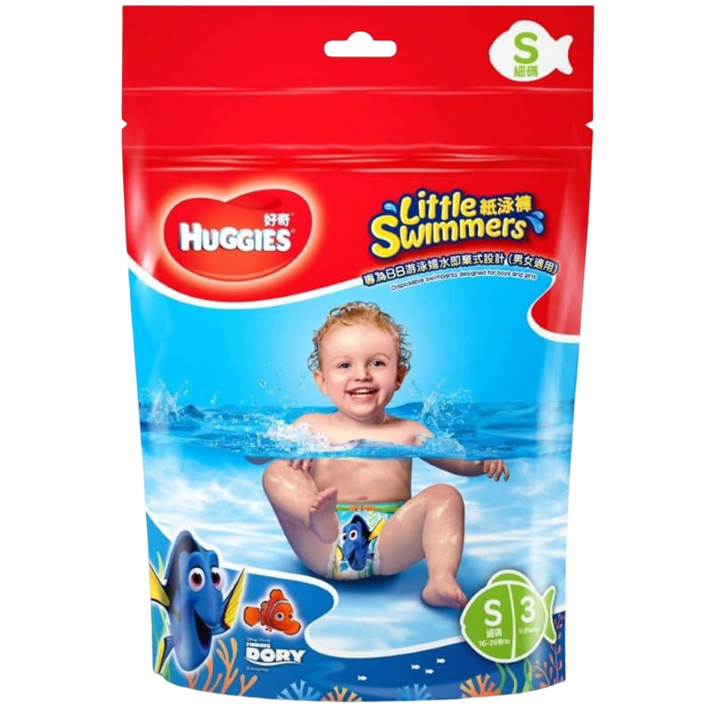 HUGGIES® Little Swimmers® disposable Swimpants for boys and girls, allowing worry-free water play. Tear away sides for easy removal. Unique absorbent material that protects without swelling in water. Leak guards to help stop leaks. Stretchable sides for comfortable fit.