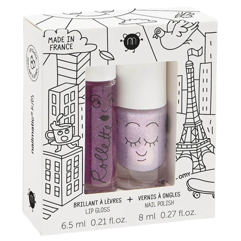 The nailmatic beauty kit for budding beauty fans: Elliot pearly pink nail polish and a blackberry Rollette lip gloss. A tasty and glam gift set for the kids!