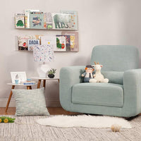 Cuddle up and stay awhile in the superior comfort of the Tuba Glider. This lovably large, chair-and-a-half is perfectly sized for feedings (roomy enough for nursing twins), story time, or just snuggling with your mini me. Never feel cramped or uncomfortable in your new favorite chair. And with modern fine fabrics and a stainless steel swivel base with 360 degree motion, the Tuba Glider makes a handsome addition to the nursery and home.