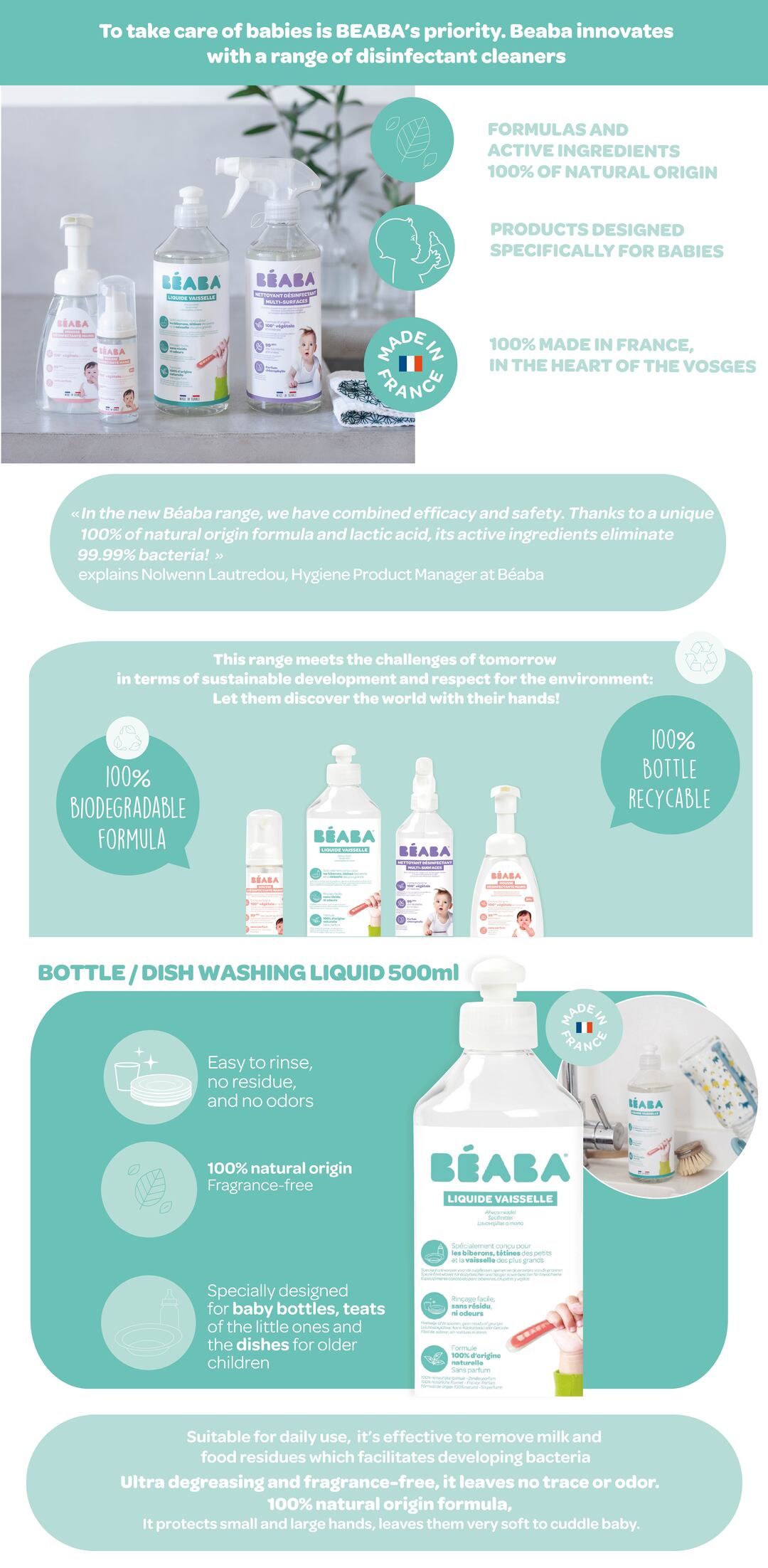Introducing Beaba Dishwashing Liquid (500ml) – the ultimate solution for cleaning your little one's teats, bottles, and dishes.