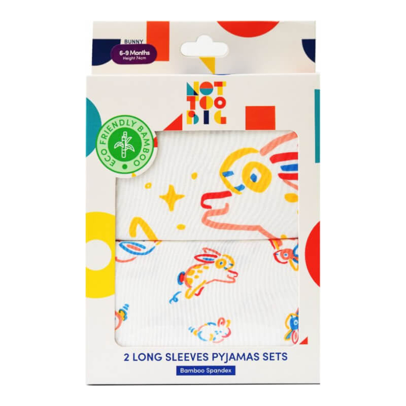 Hop hop little bunny! Our bunny themed pyjamas pack features 2 sets of uniquely designed pyjamas, each with our super soft & stretchable bamboo material. Our super comfortable pyjamas keep your baby comfort with sweet dream during bedtime.