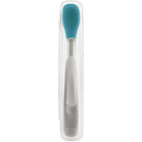 A soft, right-sized Spoon for gentle feeding on the go Features: Food-grade silicone coating gives this Feeding Spoon a soft touch Each shallow spoonful holds just enough for baby’s mouth, and is soft enough to scrape the last bits out of the bowl or wipe them off of baby’s face. Contoured handle is angled for easy feeding Spoon fits neatly into the compact carrying case Age: 6+ months Top rack dishwasher safe BPA, Phthalate and PVC free Dimensions: 6.5"" x 0.8"" x 1.1""