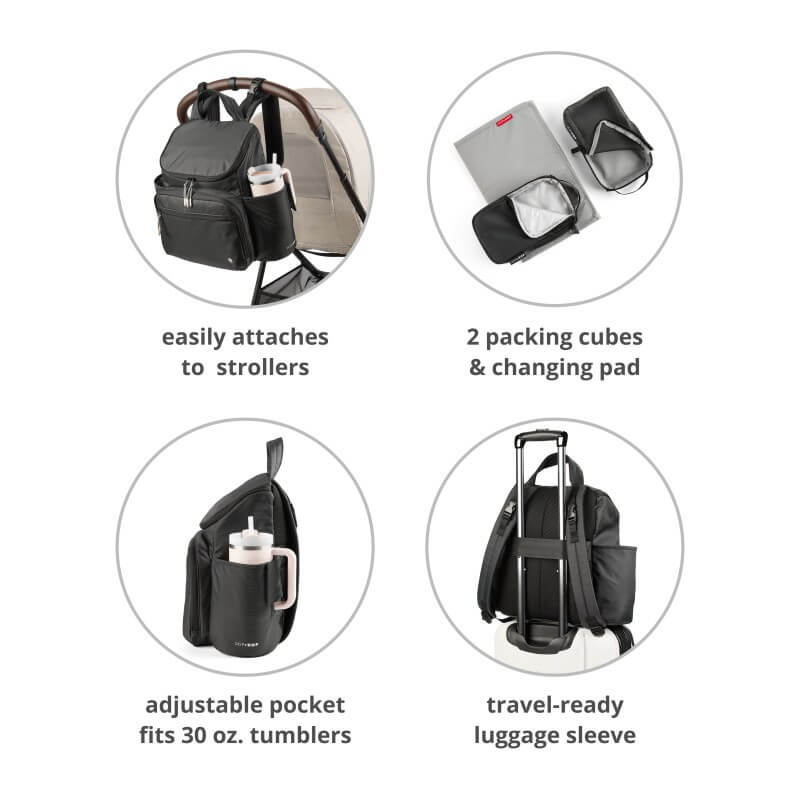 Meet the next generation of Skip Hop's best-selling Forma Nappy Bag Backpack. Designed for busy parents on the move, this new design features an adjustable bottle pocket that fits up to 40oz. tumblers & handles - because we know you love to stay hydrated when you’re out and about with baby