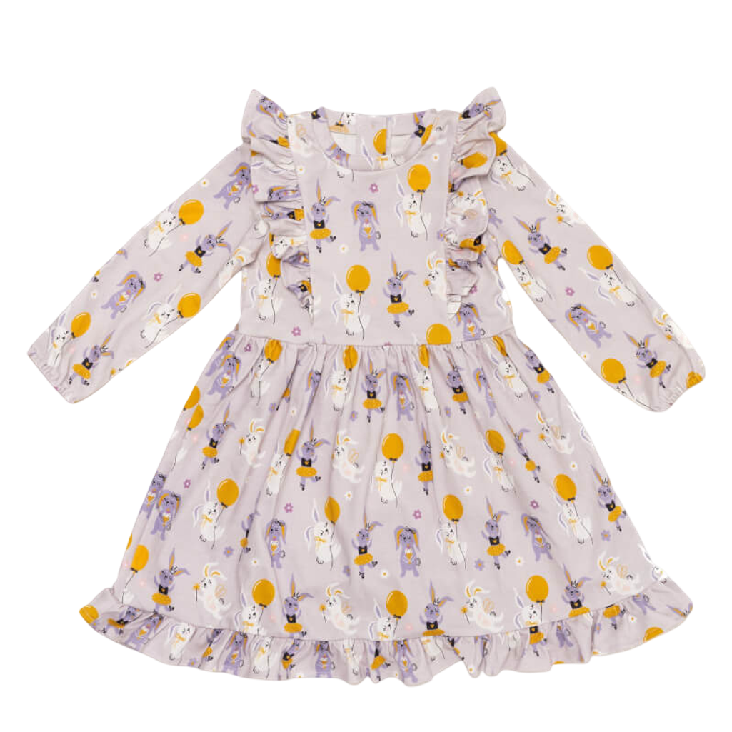 We love the little details such as the ruffle trimmings on the shoulder and skirt. Crafted in the softest and most sustainable organic cotton, this adorable dress is both comfy and stylish. This dress comes with gathered sleeves, a round neckline and sustainable coconut buttons on the back.