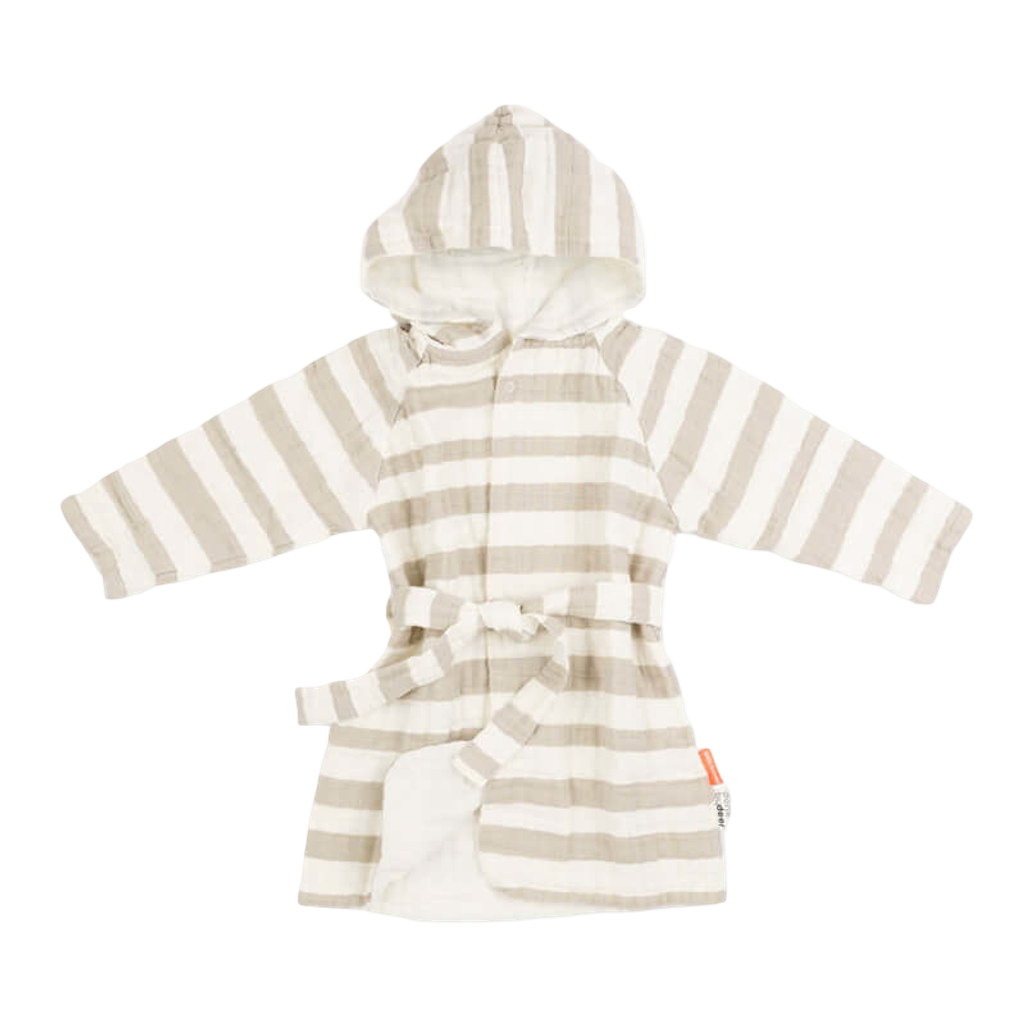 寬間條浴袍是真正的必備品!非常適合在懶洋洋的周末早上穿著,或讓孩子在沐浴後保持乾爽和溫暖。 這款柔軟的浴袍由多層有機棉製成,質地輕盈,親膚柔滑。浴袍提供充足的活動空間,有機棉在洗滌時會更加柔軟。浴袍配有實用的繫帶以供調整鬆緊,可確保合身。