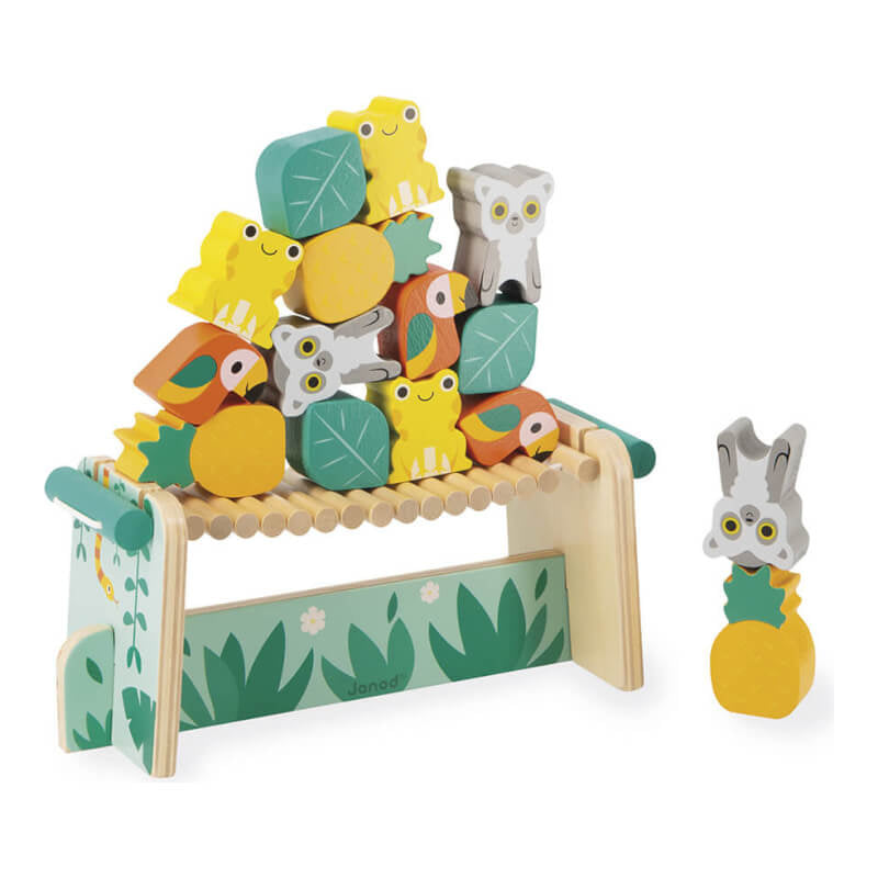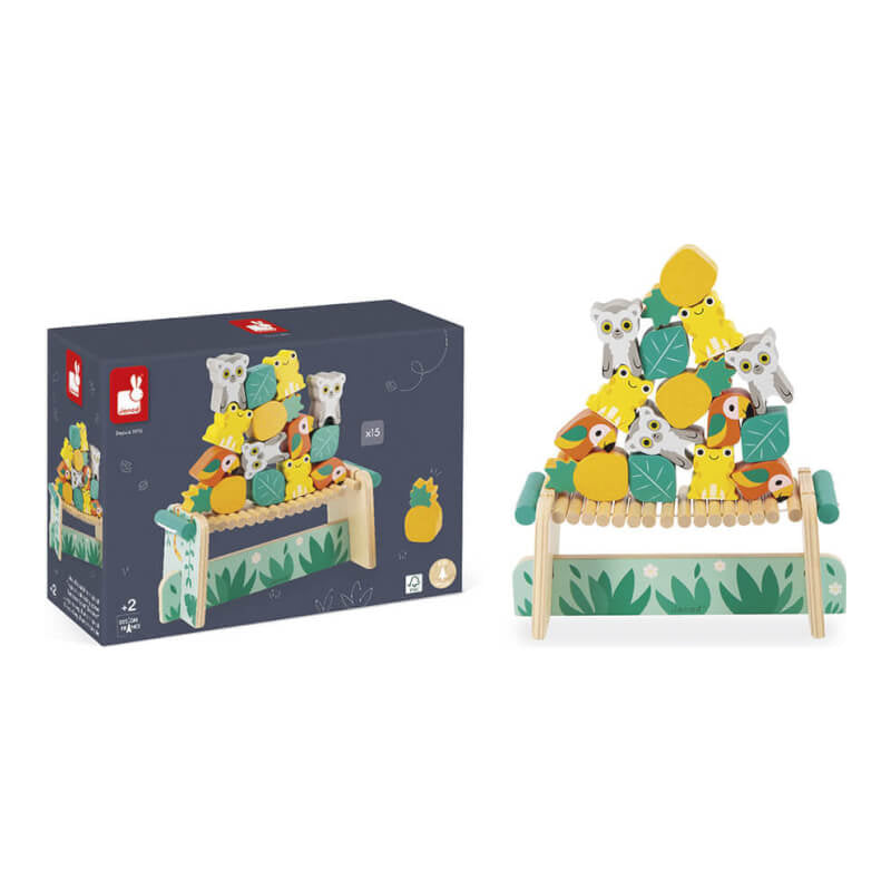 吊橋上能容納所有人嗎?這完全取決於平衡!青蛙、狐猴和鸚鵡必須在樹葉和鳳梨之間找到自己的位置,同時也要保持平衡。這款色彩繽紛的益智玩具採用FSC認證木材和水性塗料製成,是Janod環保Tropik系列產品之一,該系列以色彩鮮豔的熱帶雨林動物為主題。孩子需要集中註意力,靈巧地將15塊木塊堆疊在橋上,才能確保它們不會倒塌。這款玩具非常適合鍛鍊孩子的靈活性和手眼協調能力,只要組裝好橋的4個部分,就可以和朋友們來一場堆疊挑戰啦!